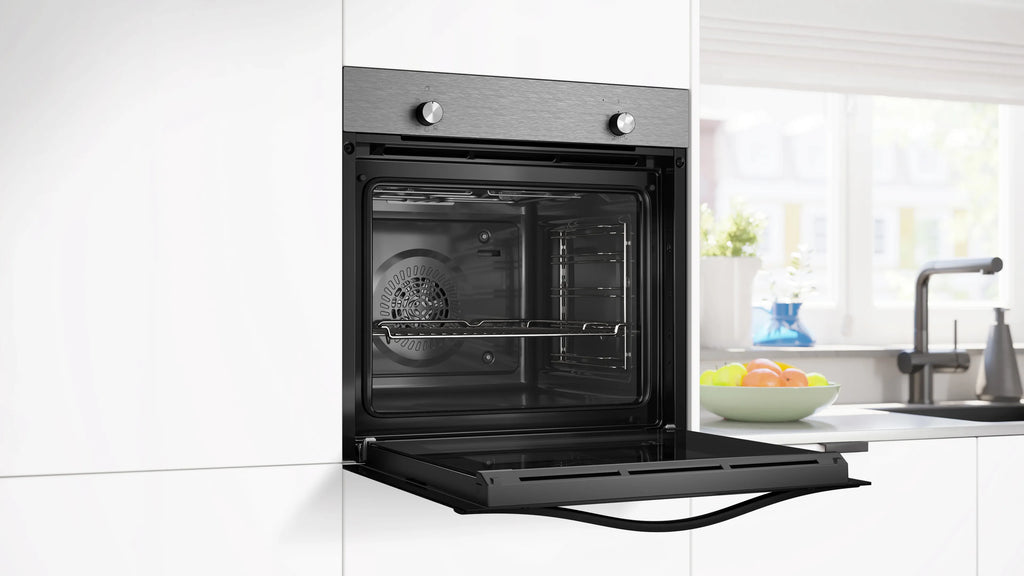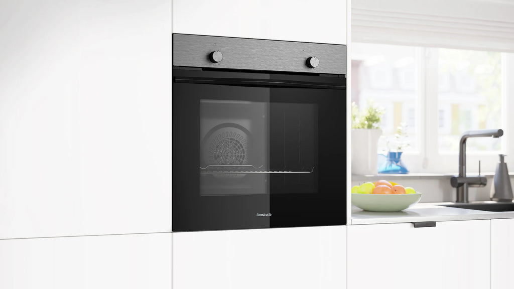 Der CONSTRUCTA CF3M10053 Einbau-Backofen liefert präzise Temperaturkontrolle und vielseitige Heizarten für gleichmäßige Back- und Bratergebnisse. Mit Home Connect WLAN-Steuerung und Schnellvorheizfunktion reduziert er Vorheizzeiten und erlaubt Fernbedienung per App. Fugenlose Vollglas-Tür und integriertes Reinigungssystem sorgen für einfache Pflege; Zubehör: Universalpfanne und verchromter Bratrost. Geräteabmessungen: H 59,5 cm x B 59,4 cm x T 54,8 cm; Energieeffizienzklasse A (EU-Label).
